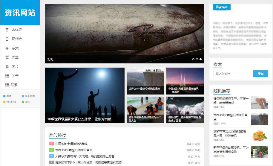 自適應適合文章類,文學作品類,資訊網站文章類網站博客類網站模板風格