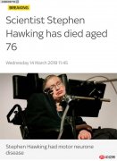 物理學(xué)家史蒂芬·霍金去世,享年76歲