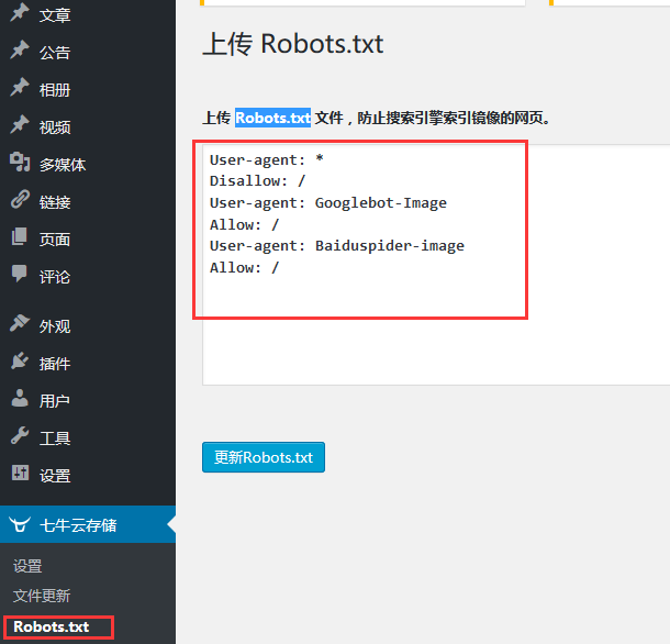 找到Robots.txt文件復制以下代碼至網站根目錄中的Robots.txt文件,之后更新即可。